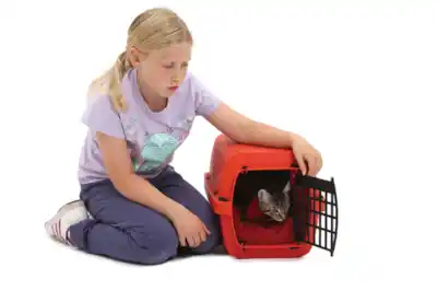 Build positive associations with cat carriers for vet visits and trips. Train your cat to use a cat carrier.