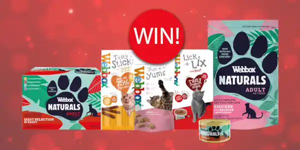 We’ve teamed up with leading pet food brand Webbox to give five lucky readers each a delicious £50 hamper of Webbox Naturals Pet Food and Webbox Treats for their cat.