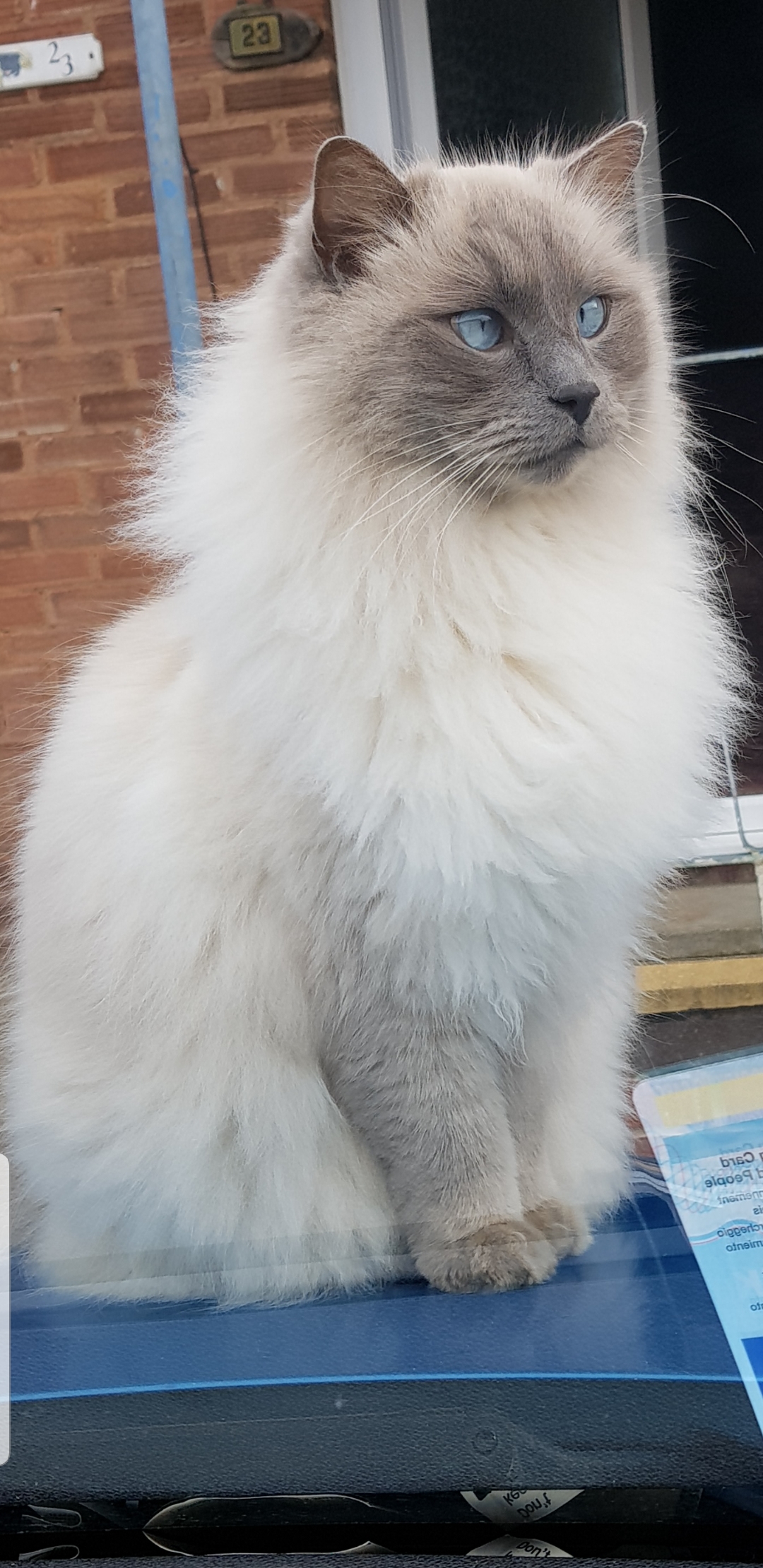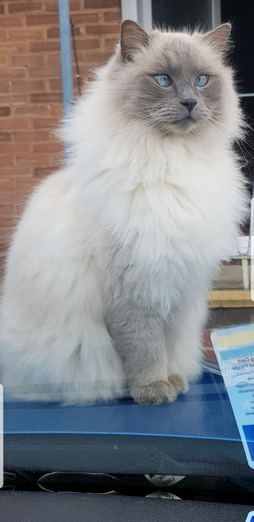 Milo sitting on the bonnet of my car