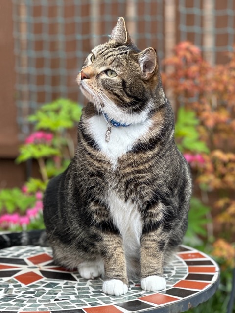 Rafferty sitting on his favourite bistro table