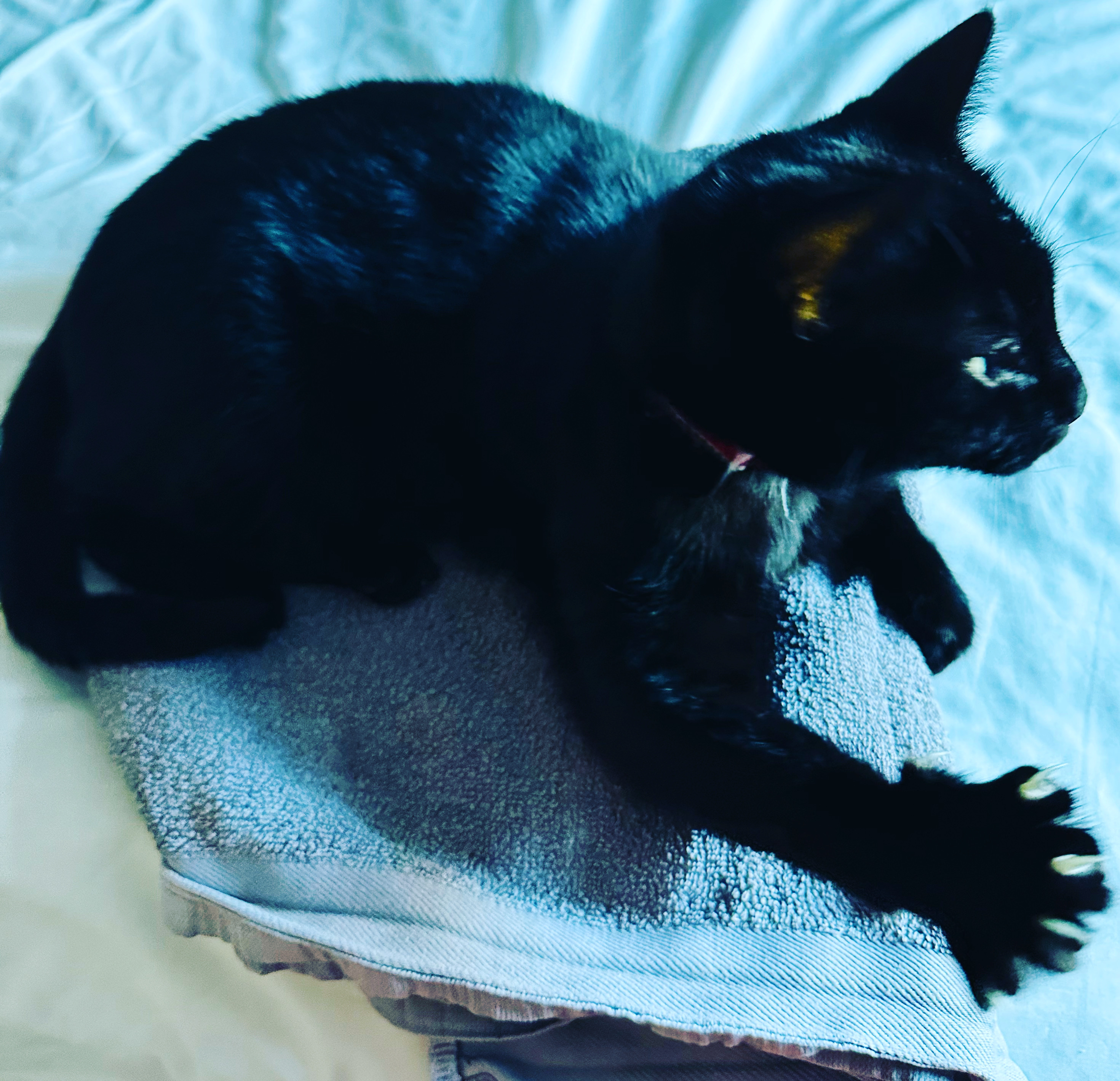 Phoebe sleeping on her favourite blanket - it used to be mine!