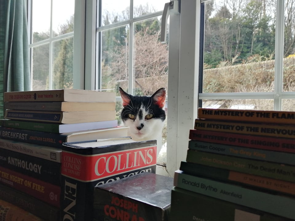 Bailey the bookworm 😻 we often find him sunning himself up here!