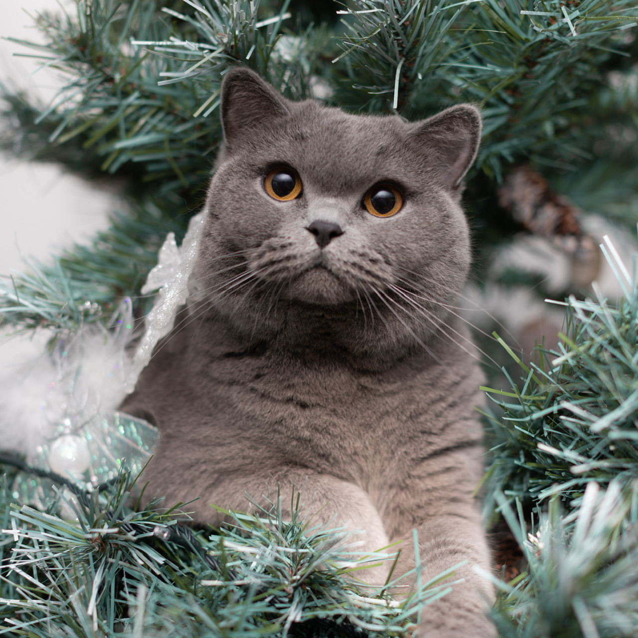Hamish relaxing in the Christmas tree.
