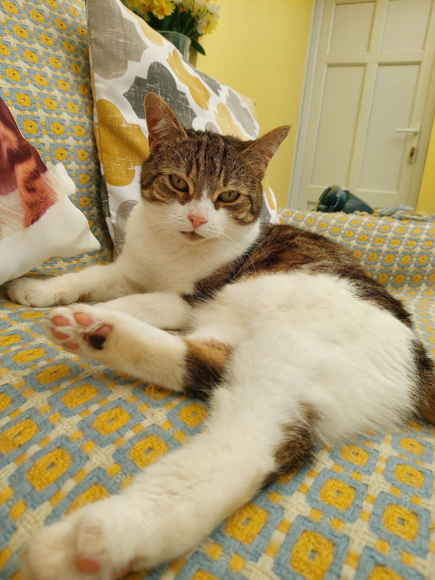 Shadow just chilling on her favourite cushion in the front garden.