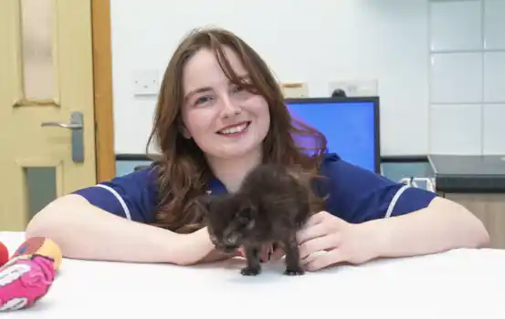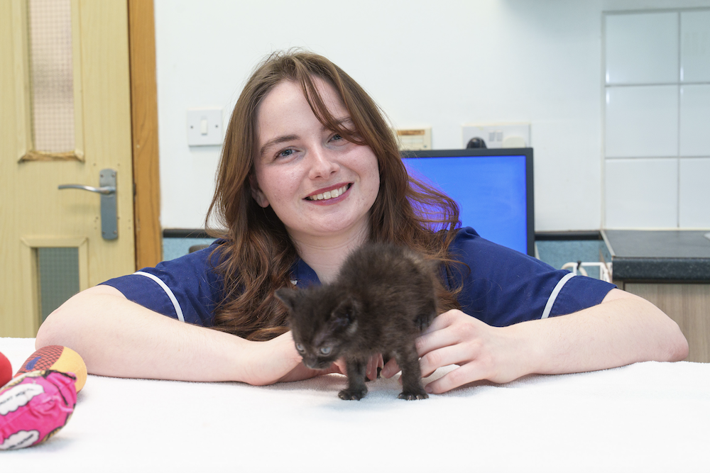 A kitten left for dead in a plastic bag with his five siblings on a freezing cold night has miraculously survived –…