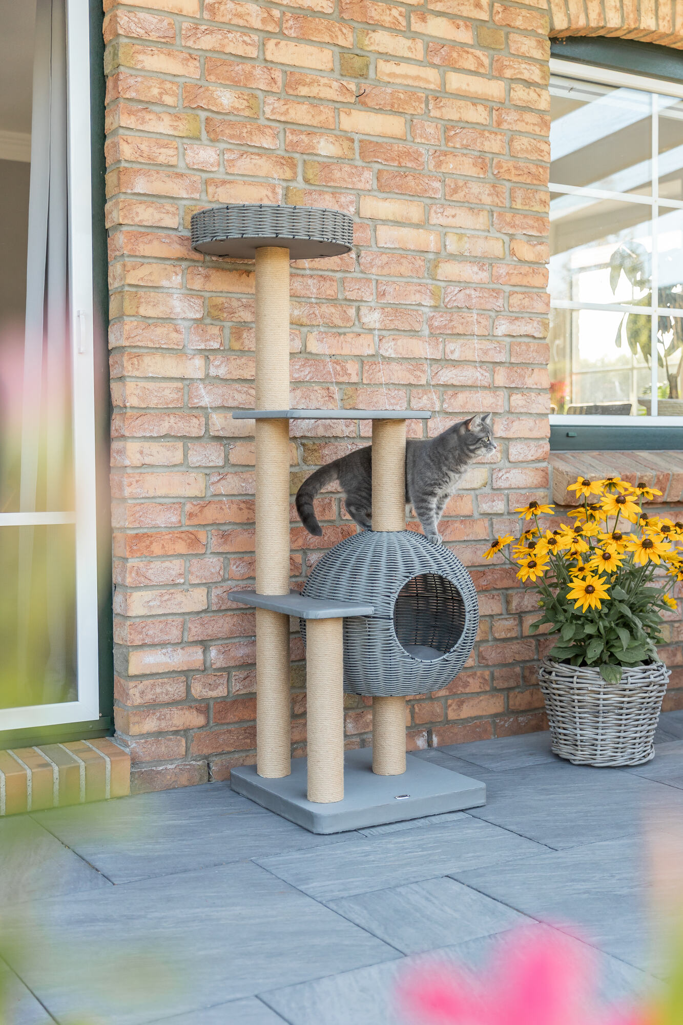 A weather‑resistant scratching post that combines function and style. Perfect for balconies, terraces and gardens.