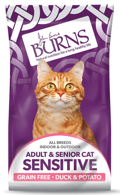 Burns Sensitive Cat Duck & Potato is a complete, grain free, hypoallergenic cat food diet that is suitable for both adult and senior cats. The combination of highly digestible ingredients such as duck, potato and buckwheat has created not only a grain free diet but is suitable for cats with digestive and food sensitivities. The recipe contains natural, novel ingredients which help to avoid common food allergens such as beef and dairy. This complete, balanced diet contains all 11 essential amino acids required for cats to help maintain a healthy body inside and out.